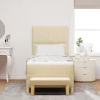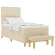 Ta krevetna vzmetnica je središče udobja in stila, idealna za vsakogar, ki želi osvežiti svojo spalnico. Njena trendovska kremna oblazitev in močan lesen okvir izstopata ter dodajata eleganco ter mirnost v vsak prostor, udobno prilegajoč enemu odraslemu.