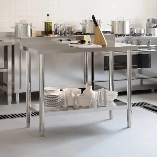 Ta kuhinjska miza je popolna za pripravo in shranjevanje hrane. Idealna je za kuhinjske bare, restavracije, šole in druge komercialne prostore.
