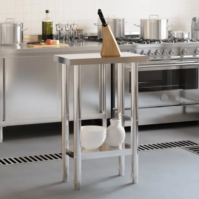• Veliko delovnega prostora: Pripravljalna miza iz nerjavečega jekla je zasnovana s spodnjo polico, zato zagotavlja dovolj prostora za shranjevanje vaše mikrovalovne pečice, kuhinjskih pripomočkov ali katerega koli drugega orodja, ki ga morda potrebujete.