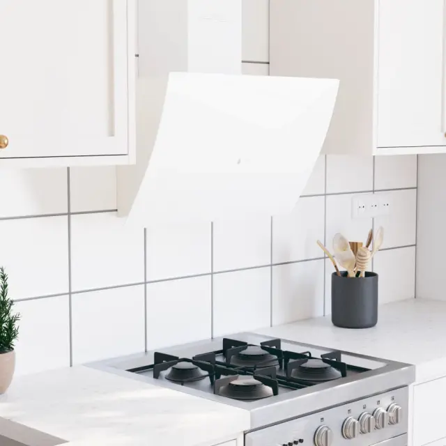 vidaXL Kuhinjska napa 60 cm jeklo in kaljeno steklo bela
