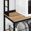 • Značilnosti / Funkcija / Oblikovanje: Police zahtevajo minimalno vzdrževanje in jih je enostavno čistiti z suho krpo. Z robustno konstrukcijo lahko podpirajo velike obremenitve, tako da je mogoče shraniti širok spekter kuhinjskih ali dekorativnih predmetov. Prostostoječa zasnova je tako funkcionalna kot stilska in prinaša industrijski pridih v vsak prostor.