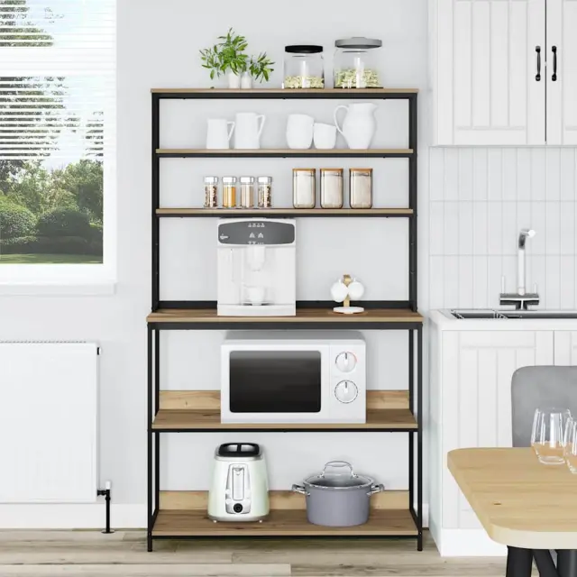 Industrijska kuhinjska polica je vsestranska rešitev za shranjevanje, ki izboljša edinstven videz kuhinj, shramb ali jedilnic. Ima trden jeklen okvir in lesene police, kar ji daje surov industrijski šarm, medtem ko zadostuje potrebam sodobnih domov. Ta pravokotna enota je odličen izbor za tiste, ki cenijo kombinacijo funkcionalnosti in estetike, saj nudi dovolj prostora za vse, od osnovnih kuhinjskih pripomočkov do dekoracij. Njena zasnova se lepo sklada z urbanimi in industrijskimi prostori.