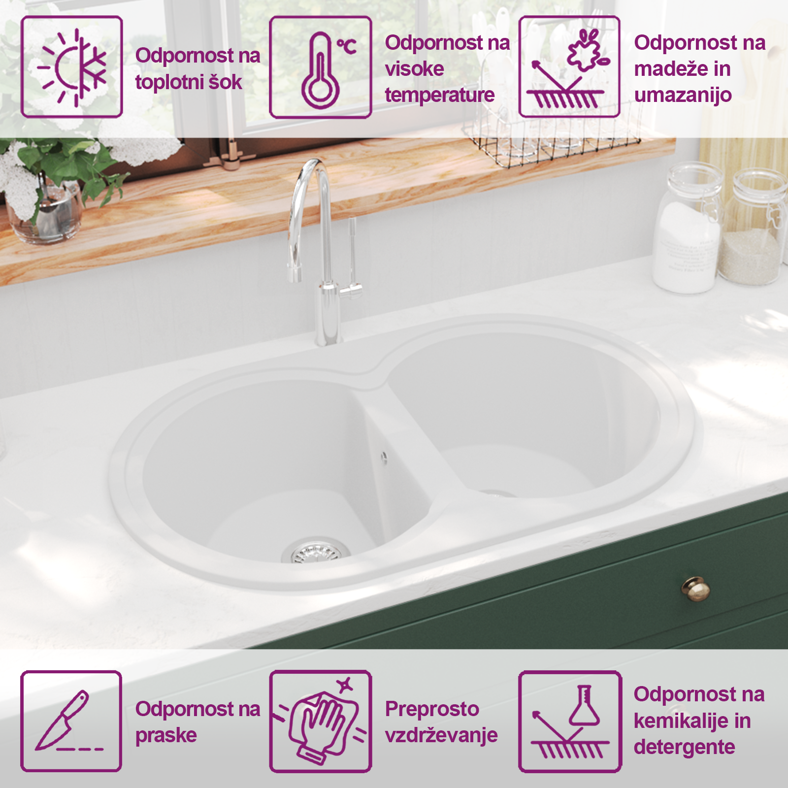 Ta kuhinjski pomivalnik iz granita povezuje moderno zasnovo in funkcionalnost, kar mu daje poseben čar za vsako zaposlene kuhinje. Njegove elegantne in preproste linije se ujamejo z različnimi stilskimi rešitvami in ponujajo zanesljiv umivalnik za vse vaše kuhinjske naloge. Ne glede na to, ali pripravljate zelenjavne jedi, pomivate posodo ali čistite pridelke, je ta pomivalnik oblikovan tako, da izboljša vaše kulinarične izkušnje z estetsko privlačnostjo in enostavno rabo.