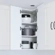 • Obsežno shranjevanje: Ima več predelkov, primernih za lonce, ponve in pripomočke, drsna vrata pa so enostavna za dostop in preprečujejo nered.