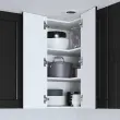 Ta lesena omara za kuhinjo s svojem elegantnim in modernim dizajnom dvigne vsako kuhinjo. Njena minimalistična oblika ponuja praktične rešitve za shranjevanje, tako da so vse stvari organizirane in urejene. Čiste linije in inženirski les dodajo sodoben pridih za vse, ki cenijo tako slog kot funkcionalnost.