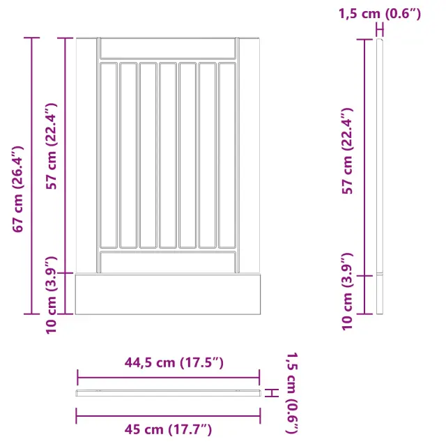 • Splošne dimenzije: 45 x 1,5 x 67 cm (D x Š x V)