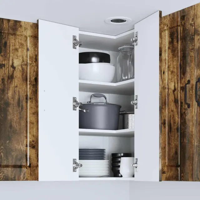 Ta lesena omara za kuhinjo s svojem elegantnim in modernim dizajnom dvigne vsako kuhinjo. Njena minimalistična oblika ponuja praktične rešitve za shranjevanje, tako da so vse stvari organizirane in urejene. Čiste linije in inženirski les dodajo sodoben pridih za vse, ki cenijo tako slog kot funkcionalnost.