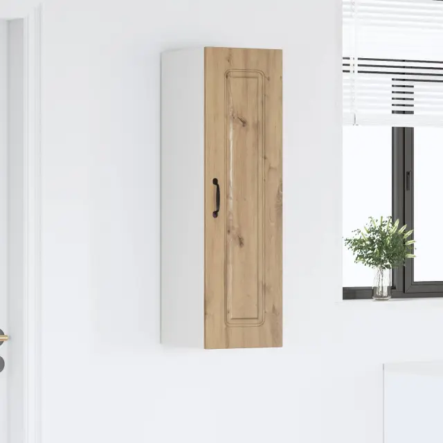 • Materiali: Kabinet, narejen iz inženirskega lesa, ponuja zanesljivo stabilnost in eleganten izgled. Material je izbran zaradi svoje vzdržljivosti, kar omogoča dolgotrajno uporabo. Njegova gladka površina doda sodoben pridih.