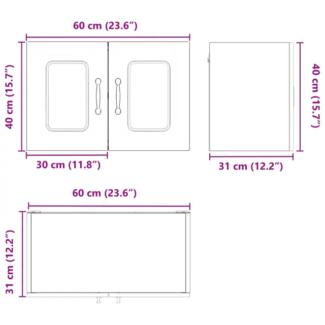 • Splošne dimenzije: 60 x 31 x 40 cm (Š x G x V)