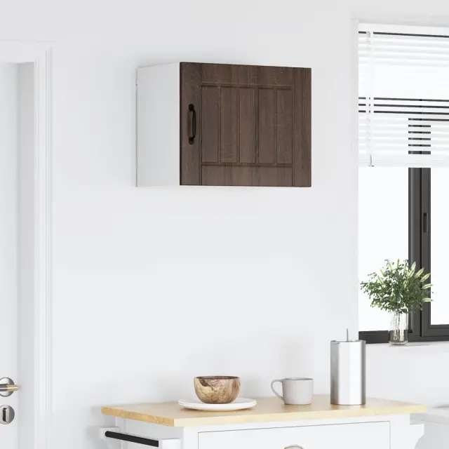 Ta lesena omara za kuhinjo s svojem elegantnim in modernim dizajnom dvigne vsako kuhinjo. Njena minimalistična oblika ponuja praktične rešitve za shranjevanje, tako da so vse stvari organizirane in urejene. Čiste linije in inženirski les dodajo sodoben pridih za vse, ki cenijo tako slog kot funkcionalnost.