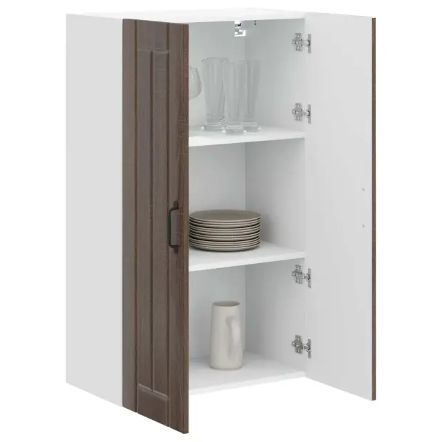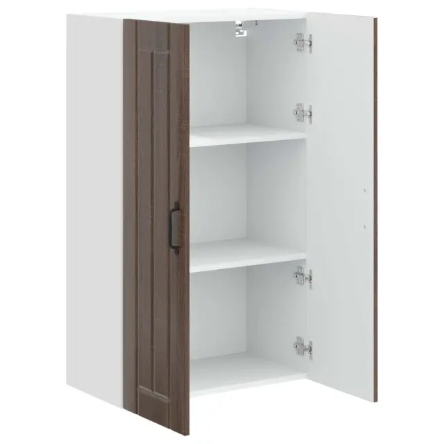Ta lesena omara za kuhinjo s svojem elegantnim in modernim dizajnom dvigne vsako kuhinjo. Njena minimalistična oblika ponuja praktične rešitve za shranjevanje, tako da so vse stvari organizirane in urejene. Čiste linije in inženirski les dodajo sodoben pridih za vse, ki cenijo tako slog kot funkcionalnost.