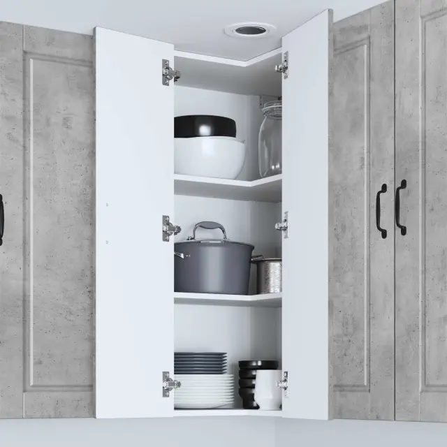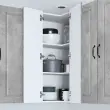 • Funkcionalne lastnosti: Praktična zasnova omare z prostornimi policami omogoča preprost dostop do vsega shranjenega. Ustrezno organizira in označuje prostor, kar olajša vsakodnevno kuhanje.
