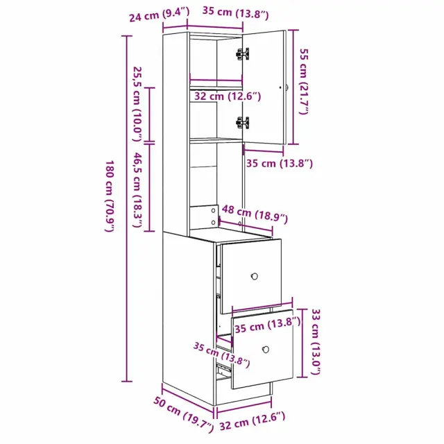 • Splošne dimenzije: 35 x 50 x 180 cm (D x Š x V)