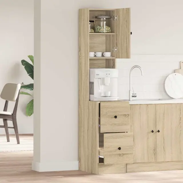Ta moderna kuhinjska omara je vse-v-enem rešitev za kuhinjo. Oblikovana je tako, da ustreza čistem, minimalističnem slogu in se odlično zlije z različnimi modernimi temami. Idealna je za družine ali kogarkoli, ki išče praktičnost in malo stila. Njen eleganten, pravokoten oblik in gladke površine dajo poliran videz, ki se poda vsakemu tipu kuhinje. Nudi ključno shranjevanje, brez da bi obžaloval dober videz.