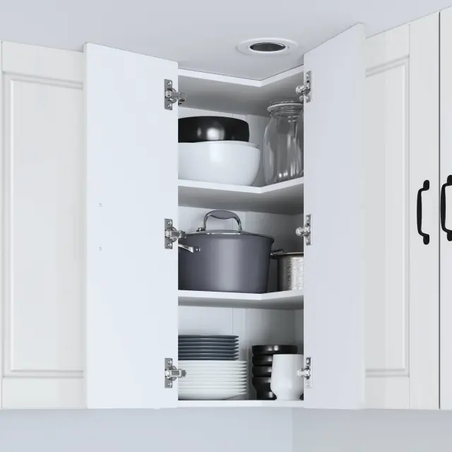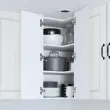 • Funkcionalne lastnosti: Praktična zasnova omare z prostornimi policami omogoča preprost dostop do vsega shranjenega. Ustrezno organizira in označuje prostor, kar olajša vsakodnevno kuhanje.