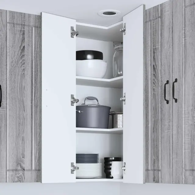 Ta lesena omara za kuhinjo s svojem elegantnim in modernim dizajnom dvigne vsako kuhinjo. Njena minimalistična oblika ponuja praktične rešitve za shranjevanje, tako da so vse stvari organizirane in urejene. Čiste linije in inženirski les dodajo sodoben pridih za vse, ki cenijo tako slog kot funkcionalnost.