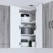 Ta lesena omara za kuhinjo s svojem elegantnim in modernim dizajnom dvigne vsako kuhinjo. Njena minimalistična oblika ponuja praktične rešitve za shranjevanje, tako da so vse stvari organizirane in urejene. Čiste linije in inženirski les dodajo sodoben pridih za vse, ki cenijo tako slog kot funkcionalnost.