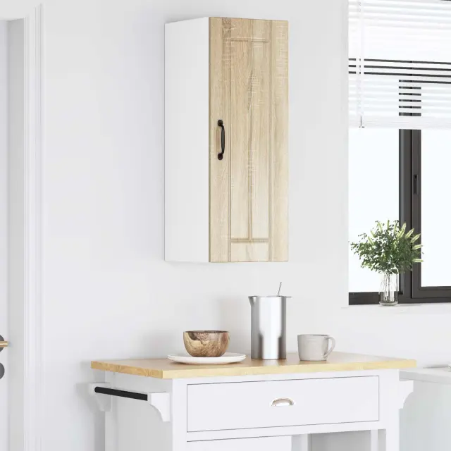 Ta lesena omara za kuhinjo s svojem elegantnim in modernim dizajnom dvigne vsako kuhinjo. Njena minimalistična oblika ponuja praktične rešitve za shranjevanje, tako da so vse stvari organizirane in urejene. Čiste linije in inženirski les dodajo sodoben pridih za vse, ki cenijo tako slog kot funkcionalnost.