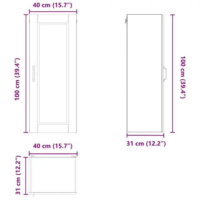 • Splošne dimenzije: 40 x 31 x 100 cm (D x Š x V)
