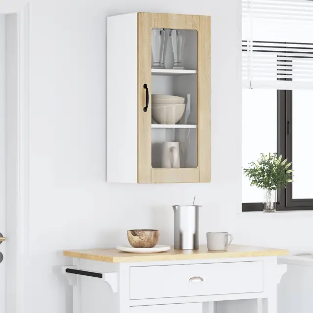 Ta lesena omara za kuhinjo s svojem elegantnim in modernim dizajnom dvigne vsako kuhinjo. Njena minimalistična oblika ponuja praktične rešitve za shranjevanje, tako da so vse stvari organizirane in urejene. Čiste linije in inženirski les dodajo sodoben pridih za vse, ki cenijo tako slog kot funkcionalnost.