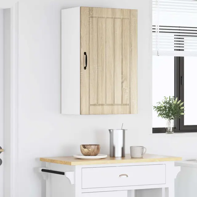Ta lesena omara za kuhinjo s svojem elegantnim in modernim dizajnom dvigne vsako kuhinjo. Njena minimalistična oblika ponuja praktične rešitve za shranjevanje, tako da so vse stvari organizirane in urejene. Čiste linije in inženirski les dodajo sodoben pridih za vse, ki cenijo tako slog kot funkcionalnost.