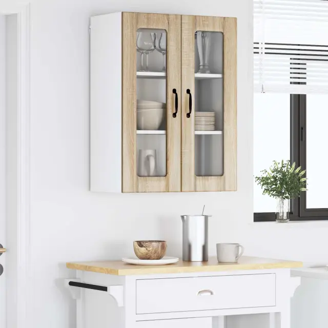 Ta lesena omara za kuhinjo s svojem elegantnim in modernim dizajnom dvigne vsako kuhinjo. Njena minimalistična oblika ponuja praktične rešitve za shranjevanje, tako da so vse stvari organizirane in urejene. Čiste linije in inženirski les dodajo sodoben pridih za vse, ki cenijo tako slog kot funkcionalnost.