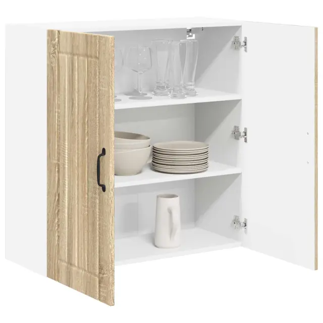 Ta lesena omara za kuhinjo s svojem elegantnim in modernim dizajnom dvigne vsako kuhinjo. Njena minimalistična oblika ponuja praktične rešitve za shranjevanje, tako da so vse stvari organizirane in urejene. Čiste linije in inženirski les dodajo sodoben pridih za vse, ki cenijo tako slog kot funkcionalnost.
