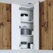 • Funkcionalne lastnosti: Praktična zasnova omare z prostornimi policami omogoča preprost dostop do vsega shranjenega. Ustrezno organizira in označuje prostor, kar olajša vsakodnevno kuhanje.