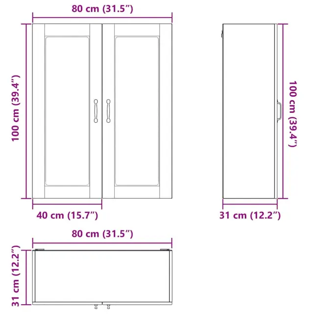 • Splošne dimenzije: 80 x 31 x 100 cm (D x Š x V)