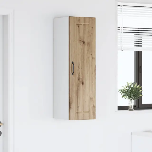 Ta lesena omara za kuhinjo s svojem elegantnim in modernim dizajnom dvigne vsako kuhinjo. Njena minimalistična oblika ponuja praktične rešitve za shranjevanje, tako da so vse stvari organizirane in urejene. Čiste linije in inženirski les dodajo sodoben pridih za vse, ki cenijo tako slog kot funkcionalnost.
