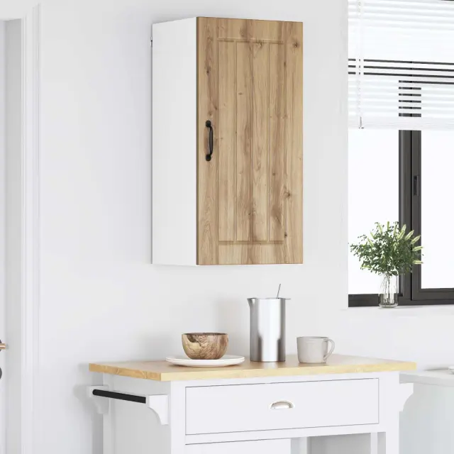Ta lesena omara za kuhinjo s svojem elegantnim in modernim dizajnom dvigne vsako kuhinjo. Njena minimalistična oblika ponuja praktične rešitve za shranjevanje, tako da so vse stvari organizirane in urejene. Čiste linije in inženirski les dodajo sodoben pridih za vse, ki cenijo tako slog kot funkcionalnost.