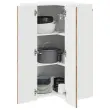 • Funkcionalne lastnosti: Praktična zasnova omare z prostornimi policami omogoča preprost dostop do vsega shranjenega. Ustrezno organizira in označuje prostor, kar olajša vsakodnevno kuhanje.