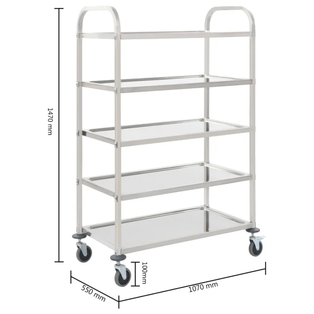 vidaXL Kuhinjski voziček 5-nadstropni 107x55x147 cm nerjaveče jeklo
