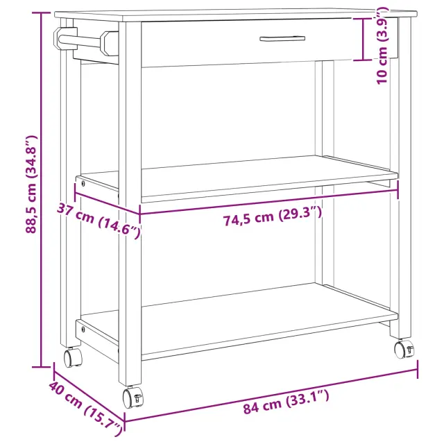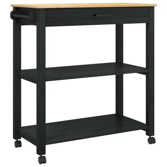 vidaXL Kuhinjski voziček Enobarvno Črna 88,5 x 40 x 48 cm
