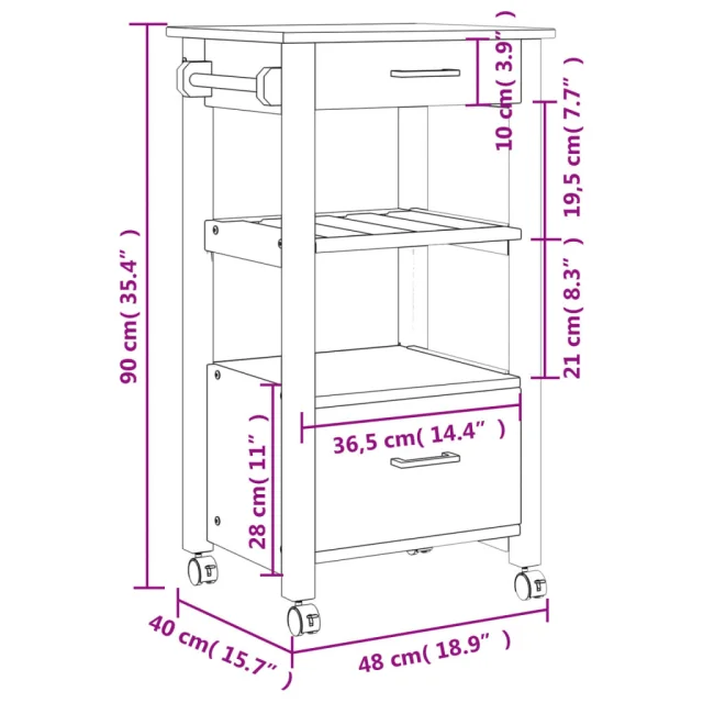 vidaXL Kuhinjski voziček MONZA 48x40x90 cm trdna borovina