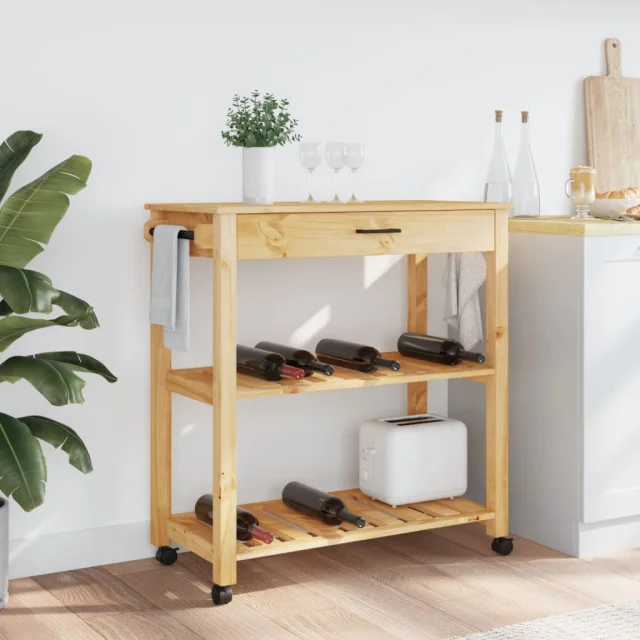 vidaXL Kuhinjski voziček MONZA 84x40x90 cm trdna borovina