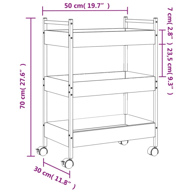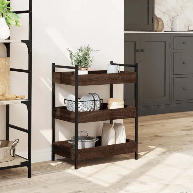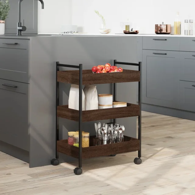 vidaXL Kuhinjski voziček rjav hrast 50x30x70 cm inženirski les