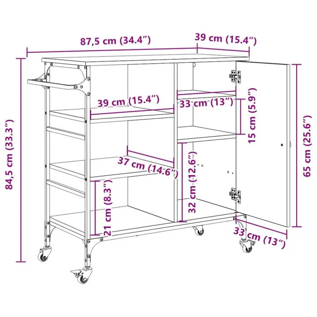 • Obilo shranjevanja Z različnimi predelki, policami in predali ti ta voziček ponuja dovolj prostora za shranjevanje kuhinjskih potrebščin. Vse je lahko dosegljivo, tako da ti ne bo treba brskati okoli, ko kuhaš — idealno za vsakogar, ki ima rad red v kuhinji.