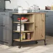 Ta kuhinjski voziček prinaša rustikalno noto v tvojo kuhinjo, dodaja šarm in ostaja praktičen. Oblikovan je tako, da je koristen in moderen, s pravokotno obliko in rustikalnim izgledom, ki slavi naravno lepoto. Njegova pametna postavitev pomaga ohranjati stvari urejene in učinkovite, kar olajša delo vsem, od izkušenih kuharjev do začetnikov.