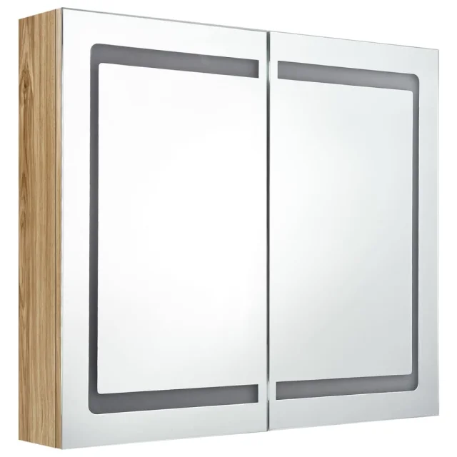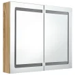 vidaXL LED kopalniška omarica z ogledalom hrast 80x12x68 cm