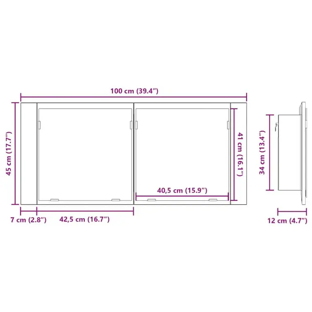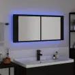 vidaXL LED ogledalna omarica s polico Črni hrast 100 x 12 x 45 cm