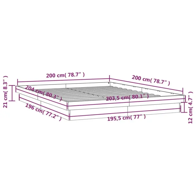 vidaXL LED posteljni okvir bel 200x200 cm trden les