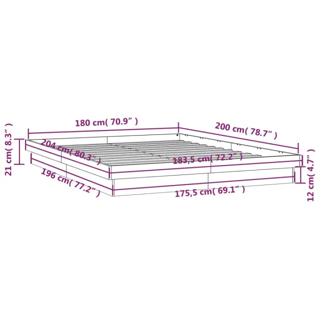 vidaXL LED posteljni okvir 180x200 cm trden les