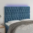 vidaXL LED posteljno vzglavje temno modro 160x7x118/128 cm žamet