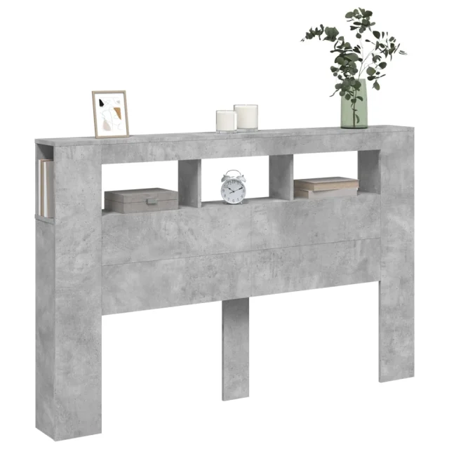 vidaXL LED posteljno vzglavje betonsko sivo 160x18,5x103,5 cm inž. les