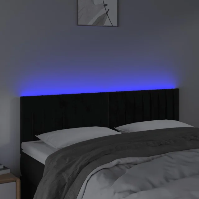 vidaXL LED posteljno vzglavje črno 144x5x78/88 cm blago
