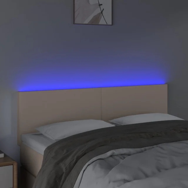 vidaXL LED posteljno vzglavje kapučino 144x5x78/88 cm umetno usnje