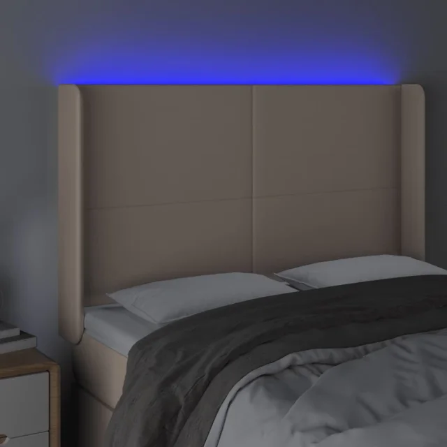 vidaXL LED posteljno vzglavje kapučino 147x16x118/128 cm umetno usnje