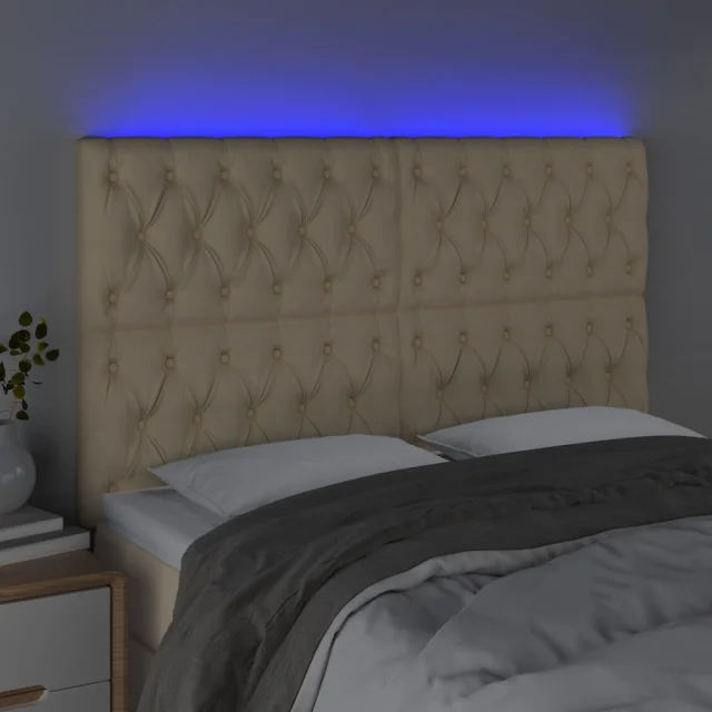 vidaXL LED posteljno vzglavje krem 144x7x118/128 cm blago