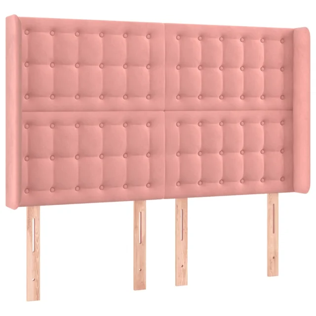 vidaXL LED posteljno vzglavje roza 147x16x118/128 cm žamet